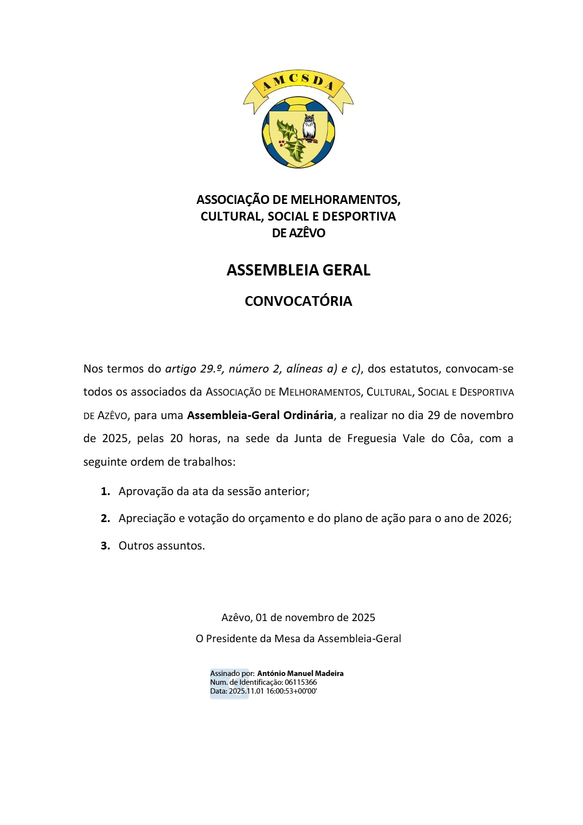 A Associação de Melhoramentos, Cultural, Social e Desportiva de Azêvo é uma Instituição Particular de Solidariedade Social..
